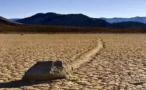 这些被视为“风帆石”的岩石躺在“跑道盆地”,国家公园一个干涸的湖泊中,这个湖非常平坦,南北长2.5英里。科学家试图解释这些石头是如何穿越平坦的湖底,他们提出强风到UFO活动等各种猜测。然而最近,这个谜团被美国航空航天局(NASA)的科学家拉尔夫·洛伦兹揭开,他发现,在冬季条件下,有足够的水和冰让岩石沿着“跑道盆地”的泥泞底部浮动并在岩石移动过程中留下痕迹。