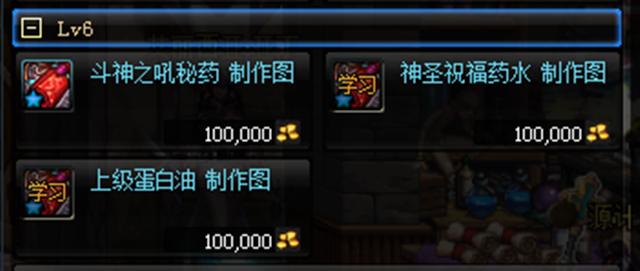 五级的时候可以学习6级的上级蛋白油,这个东西非常多人要买,用来做人偶的必备材料!而且这个东西,个人推荐一直做,把等级堆到8级。
