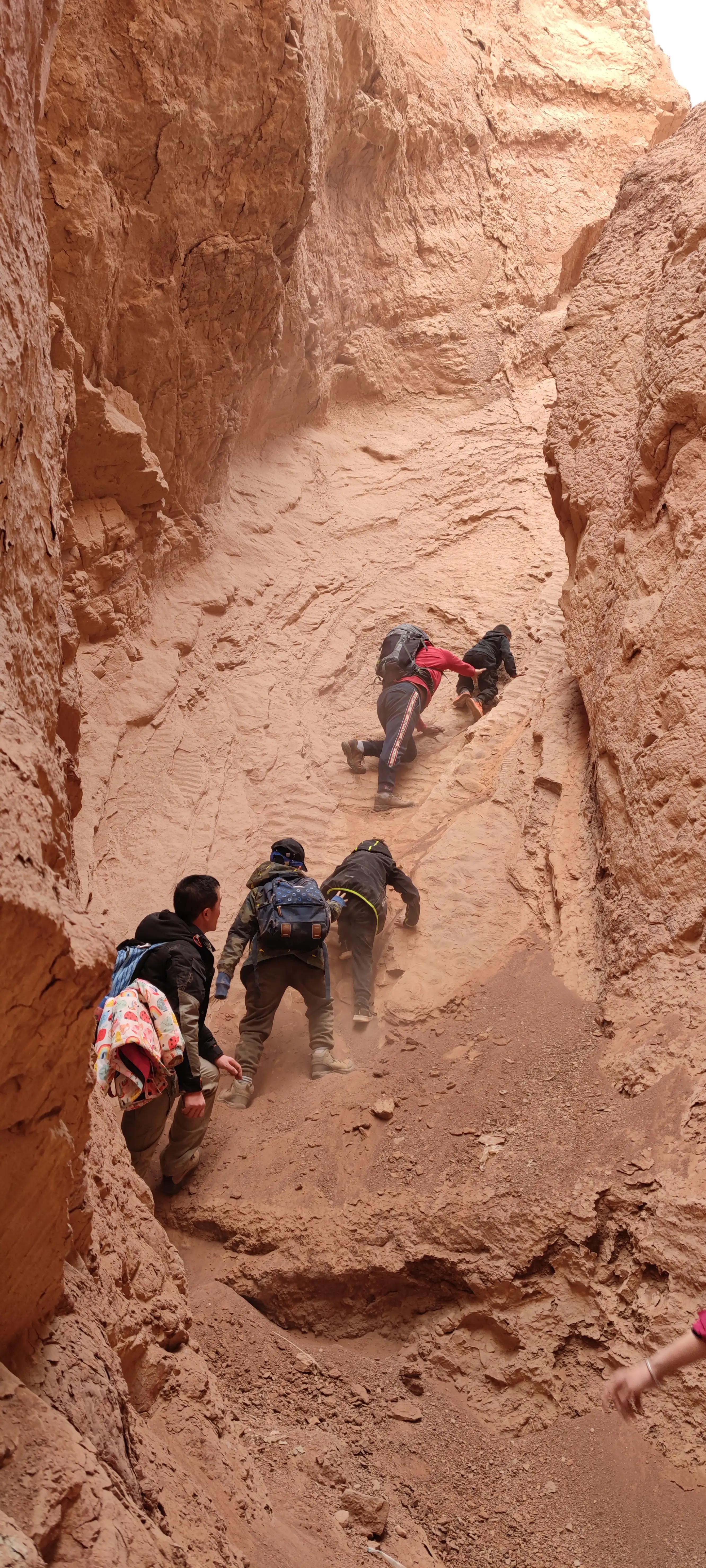 这是一天真正意义上的火焰山峡谷穿越,不同于游客休闲观景体验,我们从火焰山后山万佛宫开始,翻越横穿整个山脉,穿梭峡谷,攀爬岩石,跨越沟壑,登临山顶…午餐后顺峡谷而下,时而钻洞而过,时而侧身而行。近距离欣赏火焰山的鬼斧神工。