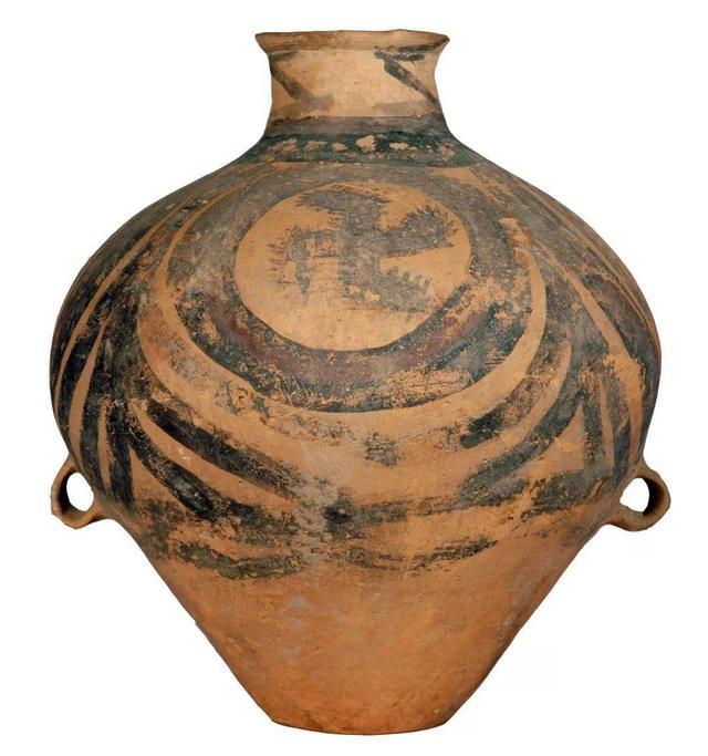 这个是古希腊人的彩陶器皿,古希腊人生活在西元前十到八史记的爱琴海一带,这个器物中也有很明显的“卍”字符。这个彩罐上描述的是送葬,三个“卍”字符在车头上方前方,是不是在指引往生者?